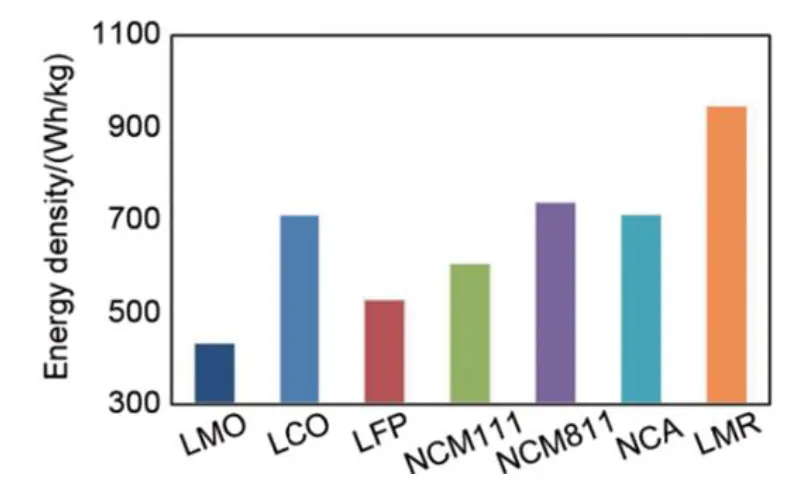 Chart 7: Comparison of energy density between commercial cathode materials and lithium-rich manganese-based materials