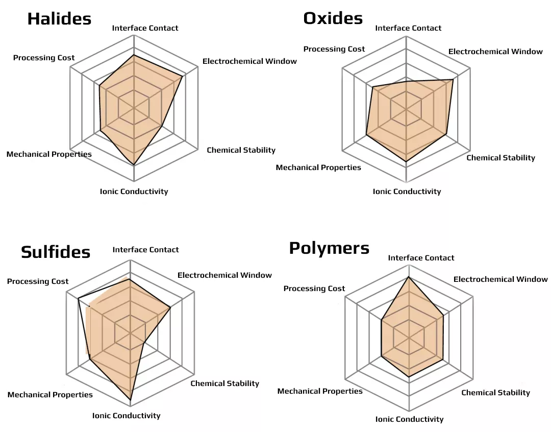 Chart 2: Comparison of Main Properties of Four Types of Solid-State Electrolytes