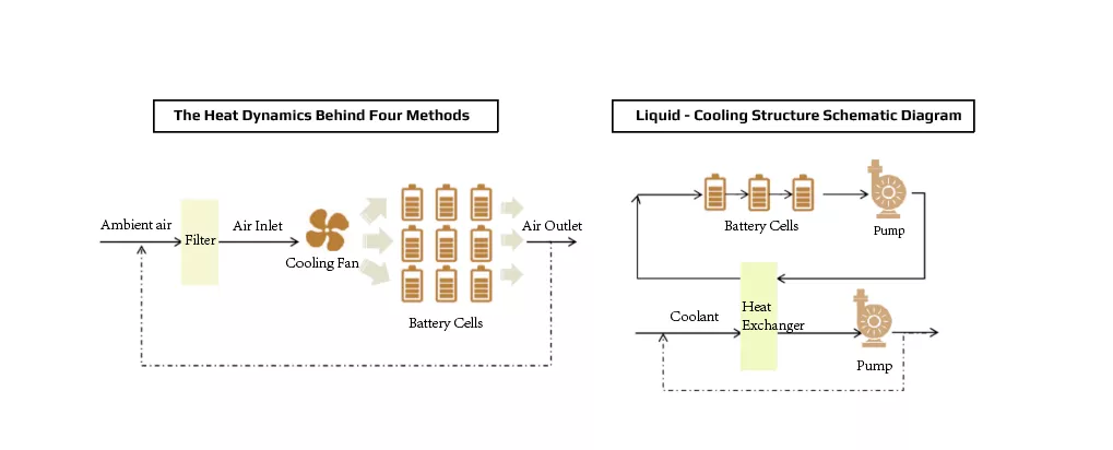 Liquid cooling technology allows the coolant to be directed directly to the heat source, achieving precise temperature control through convective heat exchange for efficient heat dissipation, significantly reducing the risk of temperature runaway fires. In contrast, air cooling technology requires fans to blow air over radiators, which is relatively less efficient.